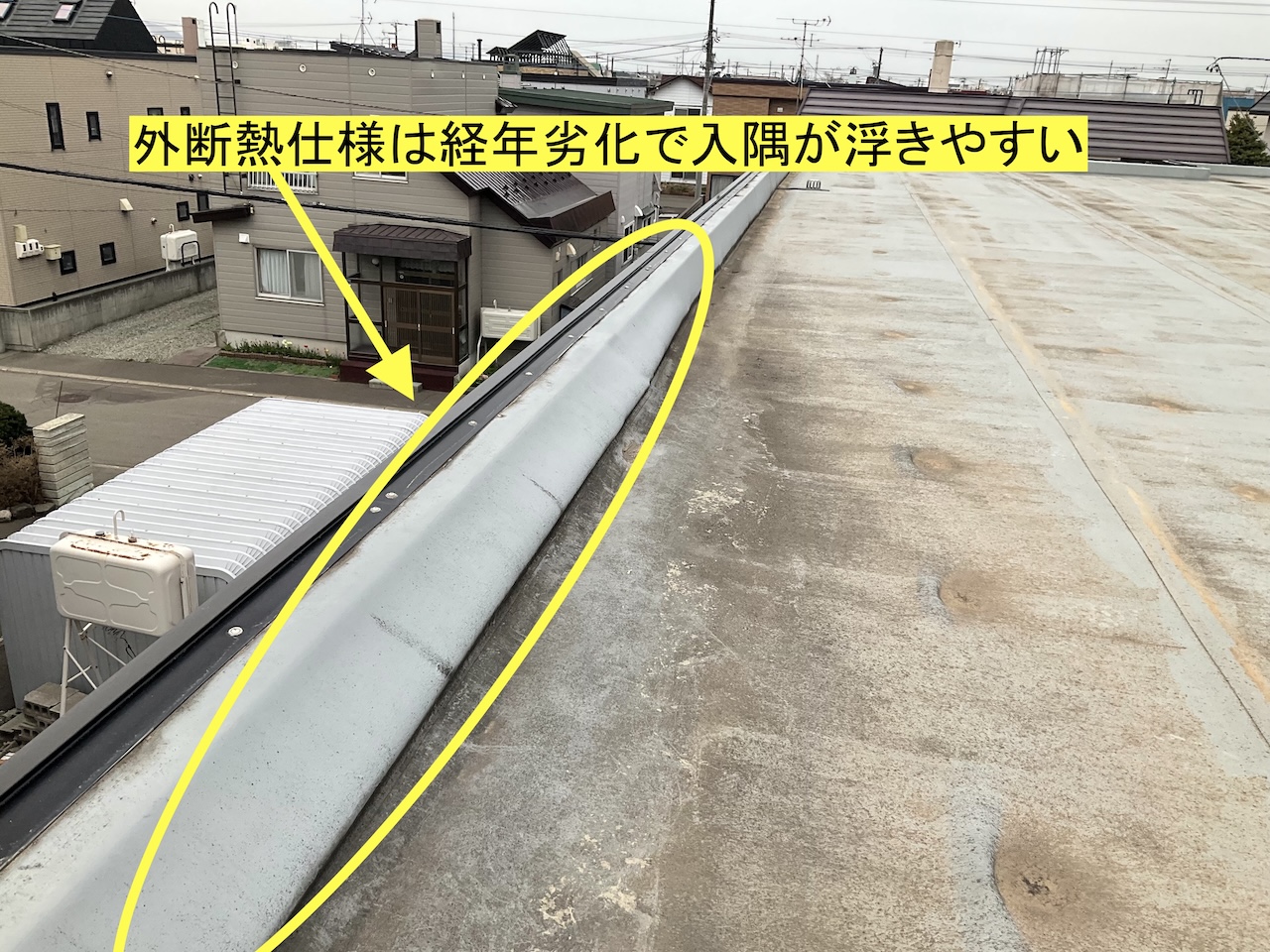 - 外周端部がビス留めの「アングル笠木」で固定されている(これが一番の見分けポイント)