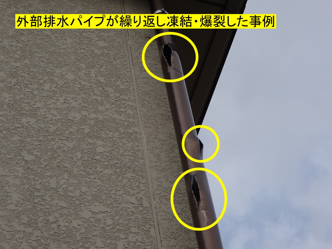 外部排水タイプは「冬の凍結事故」がいちばん多いです