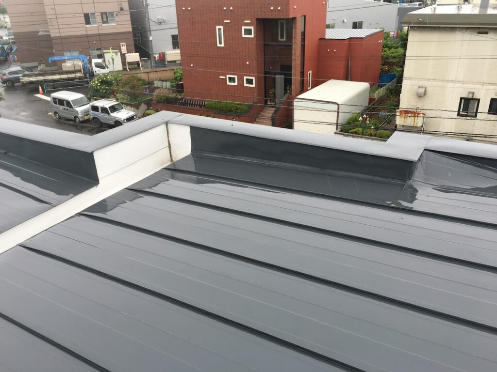 詳しくは企業秘密ですが、水返しや雨仕舞いなど「建築板金の技術」を最大限活かした工法です。